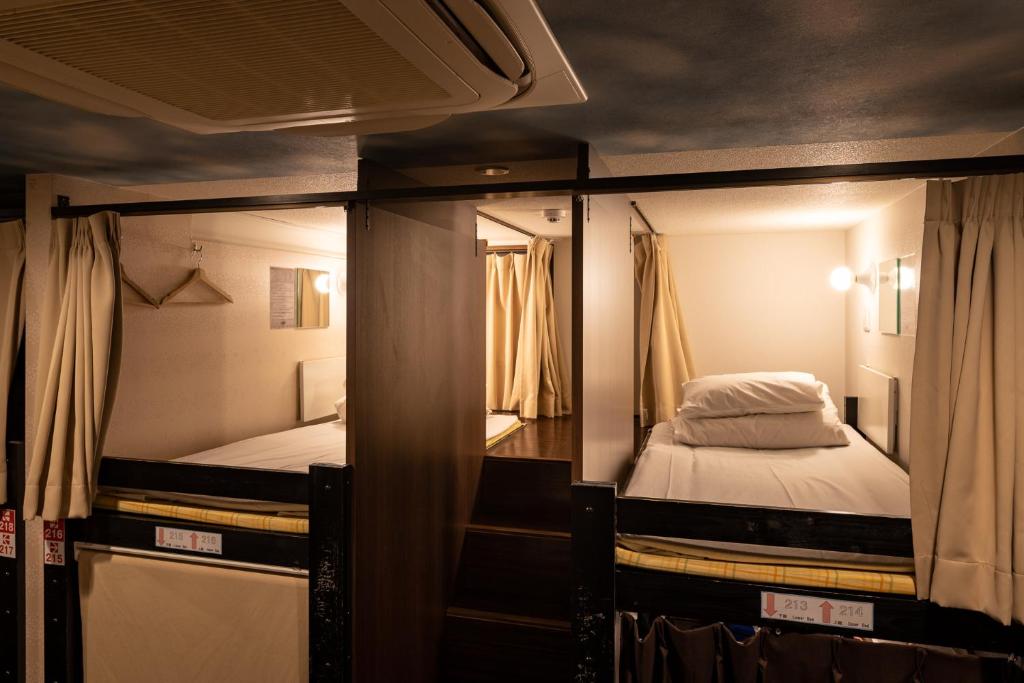 At HOTEL OWL in Tokyo, guests can immerse themselves in a variety of thoughtfully designed room types that cater to different preferences and needs. For those seeking a cozy and efficient stay, the Upper Bunk Bed - Non-Smoking and Lower Capsule - Female Only rooms, each offering 2 square meters of space, provide a snug retreat with a bunk bed configuration. The Lower Capsule - Mixed option also features a Japanese futon, perfect for travelers looking for a touch of traditional comfort. For larger groups, the Set of 2 Upper Bunk Beds in the Mixed Dormitory Room allows for a shared experience, accommodating friends or family in a vibrant atmosphere, while the Private Quadruple Room with Shower and the Standard Quadruple Room with City View offer a more private setting for relaxation after a day of exploration.